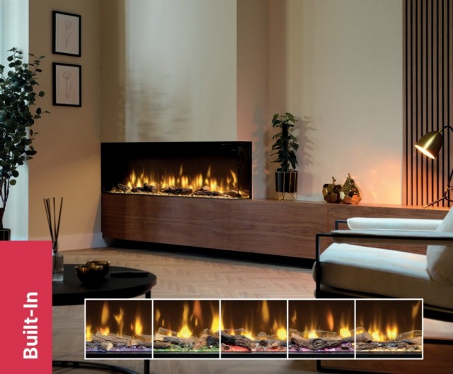 - Flere Installasjonsmuligheter: Denne allsidige peisen tilbyr flere ulike installasjonsmuligheter og kan konfigureres som en 1-, 2- eller 3-sidig innebygd peis, noe som gjør den til et perfekt alternativ for mange forskjellige bygninger.
