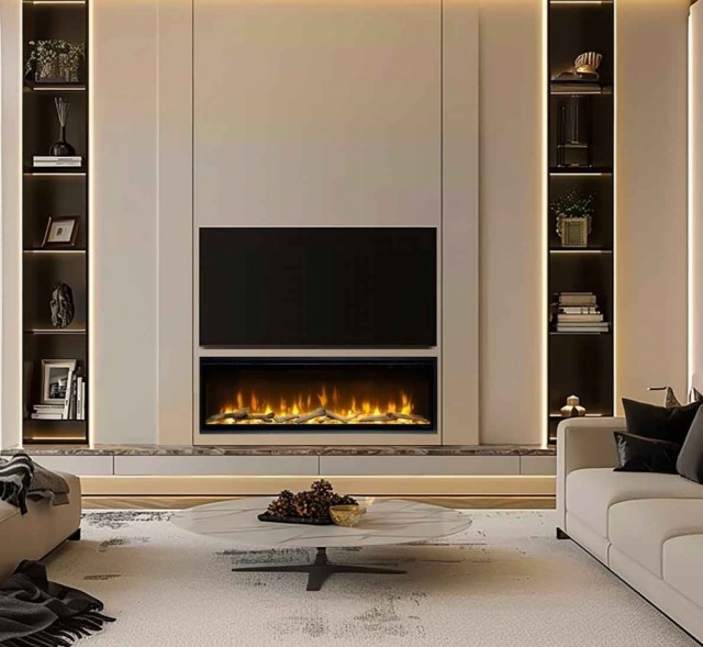Denne elegante og stilige elektriske peisen har kant til kant glass, som gir en panoramautsikt over de flimrende flammene. Med sin slanke design på bare 147 mm smelter den sømløst inn i moderne og tradisjonelle rom, noe som gjør den til det perfekte valget som veggpeis.