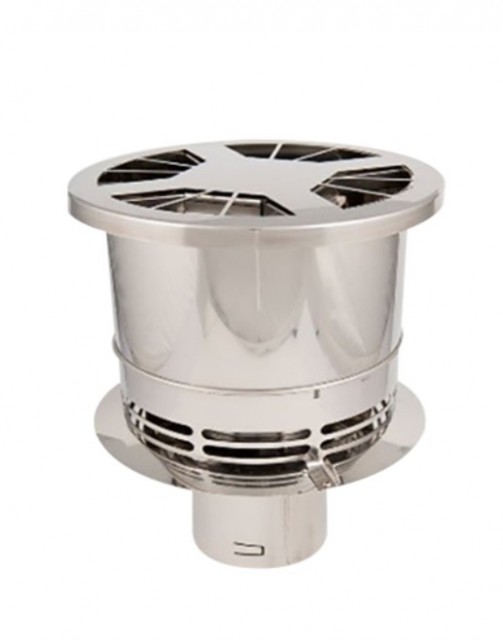 Den har innbygget regnhette-funksjon, så man unngår regn i skorsteinen.